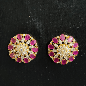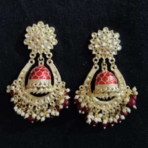 Antique Plated Earings With Grey,Copper & Red stones For Women & Girls