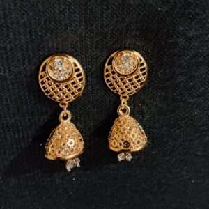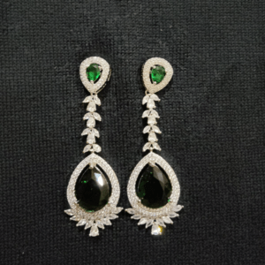 Gold Plated White & Green American Diamond Earings Set For Women & Girls