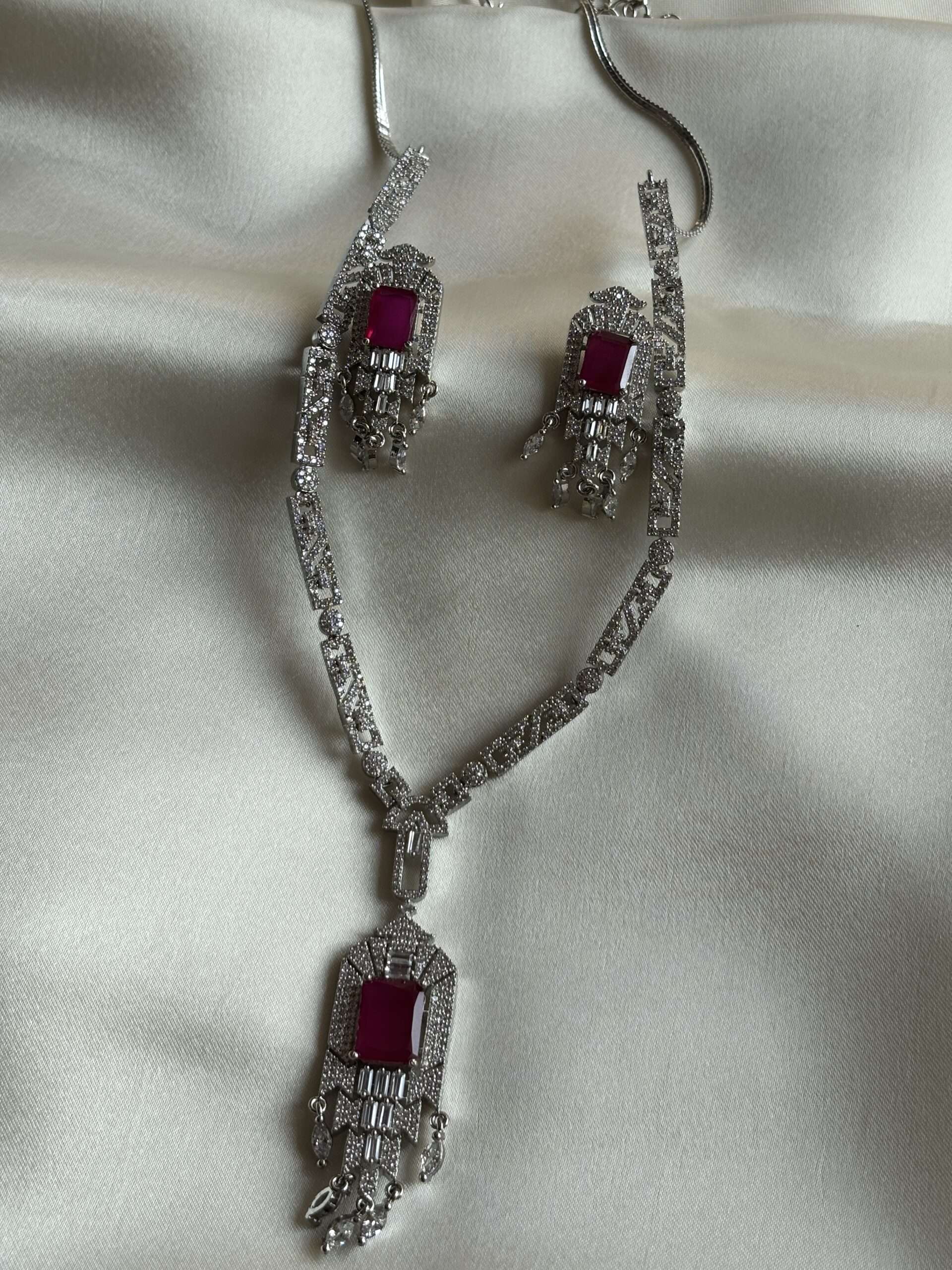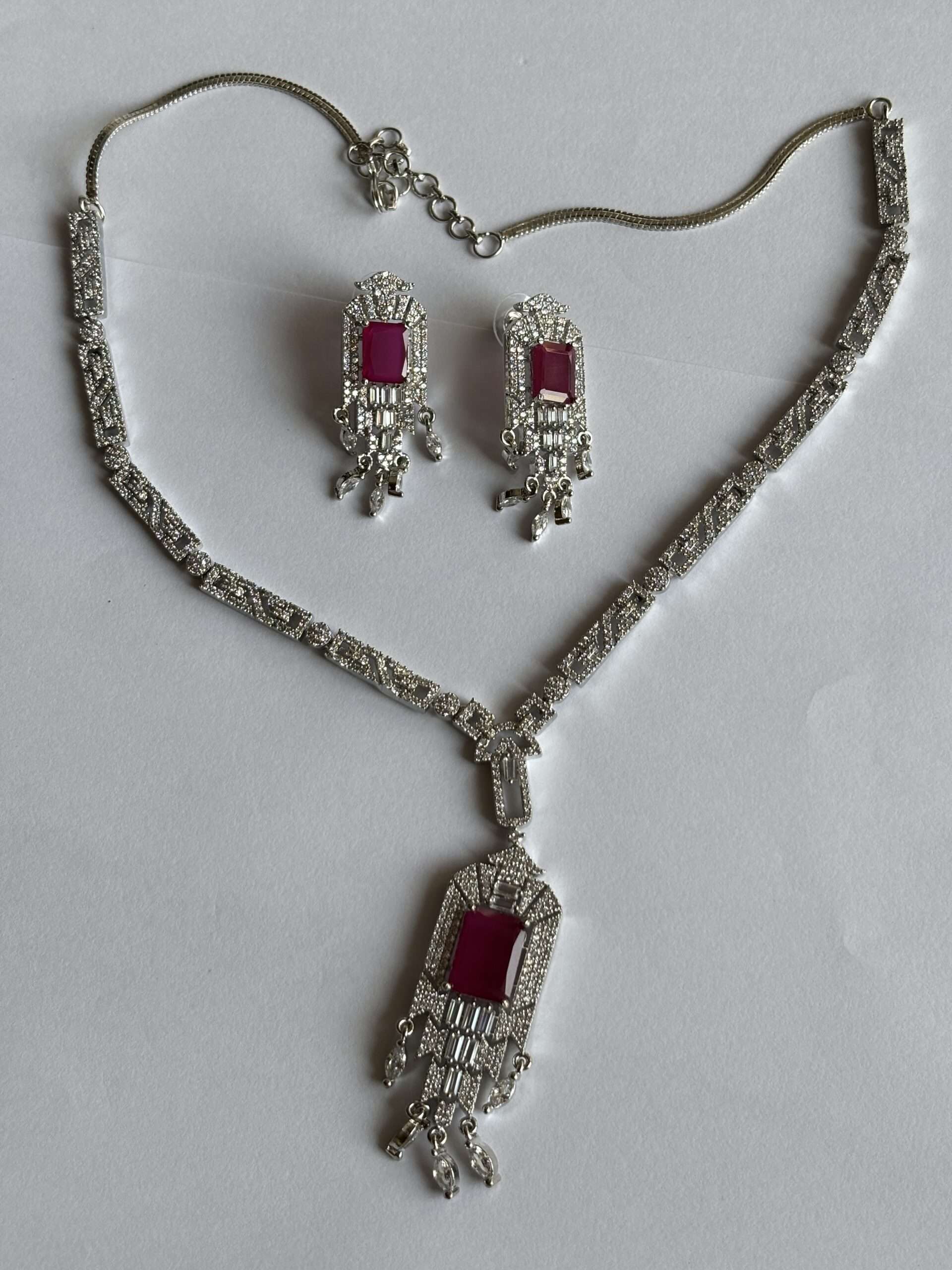 - ✅ Material: High-quality metal alloy with premium silver plating for a polished and elegant finish. ✅ Stone Colors: Red & White stones – a classic and timeless combination symbolizing love and purity. ✅ Set Includes: Necklace: Beautifully designed, adjustable silver-plated necklace with red and white stones. Earrings: Matching earrings crafted to complete the elegant look. ✅ Design & Style: Elegant and versatile – suitable for both traditional and modern outfits. Lightweight and comfortable for long hours of wear. Adjustable chain ensures a perfect fit for various necklines.